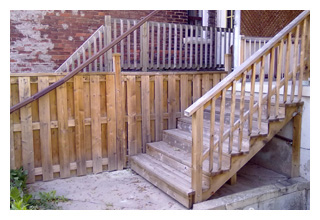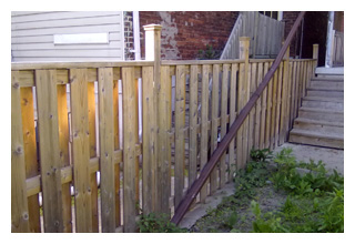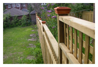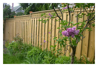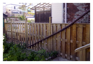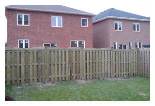 Builder's style fence. 6' pressure treated boards. 2x6 top. Reg caps. |