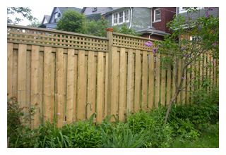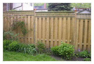 Friendly Neighbour fence. 6' pressure treated. Diagonal lattice top. |