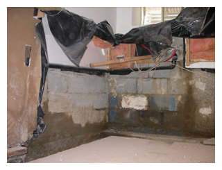 House were excavated down to the footing. Weeping tile was replaced. Walls were patched and covered with membrane. |