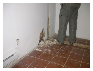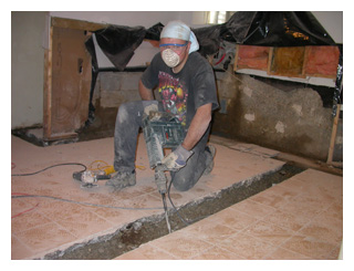 "Existing kitchen was moved out to give access to the wall and floor." |
