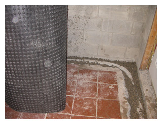 In about 100 feet of tiles were broken along the wall. Concrete and dirt were excavated, replaced with drain tile, gravel and filled with new concrete. We put membrane from ground level down to drain tiles and framed basement. Designer-style ceramic tiles were placed back.
