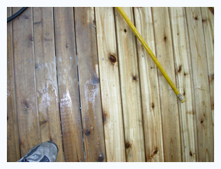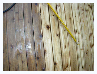 Before and After. Deck was painted in red color. |